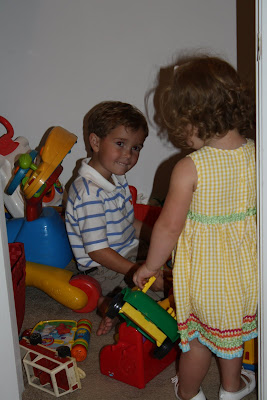 Playing in the toy closet with Elliot